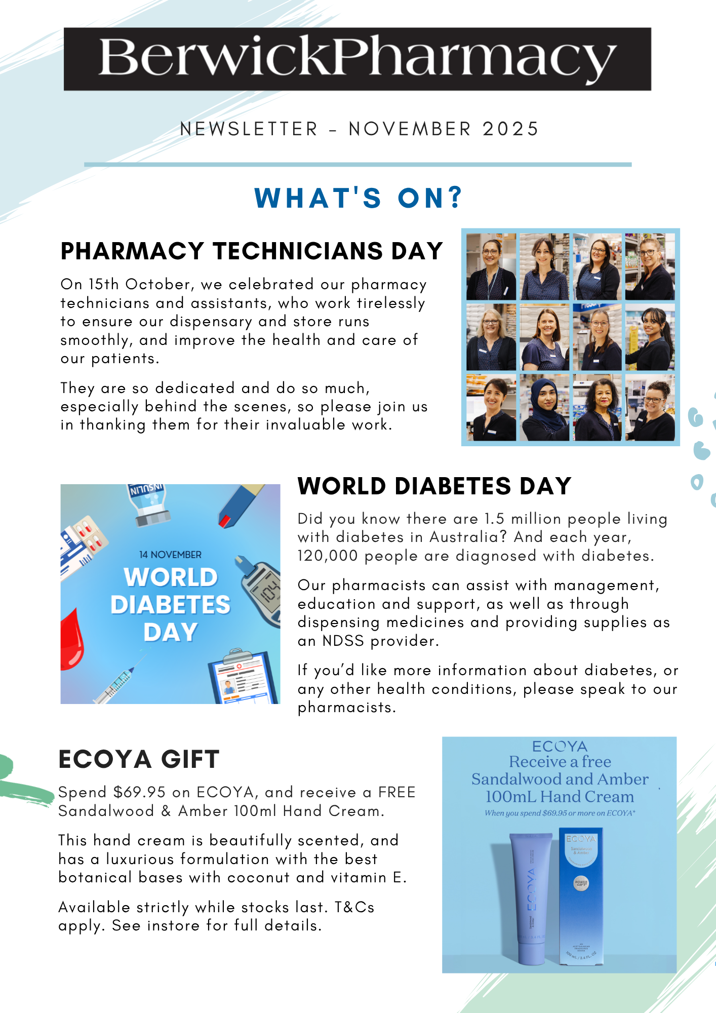 Berwick Pharmacy has been a trusted part of the Shepparton community since 1979. We are open 6 days a week from to be here when you need us the most. You can always speak with a pharmacist at Shepparton Amcal Pharmacy.